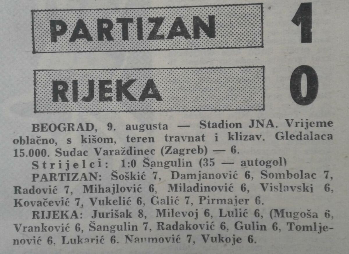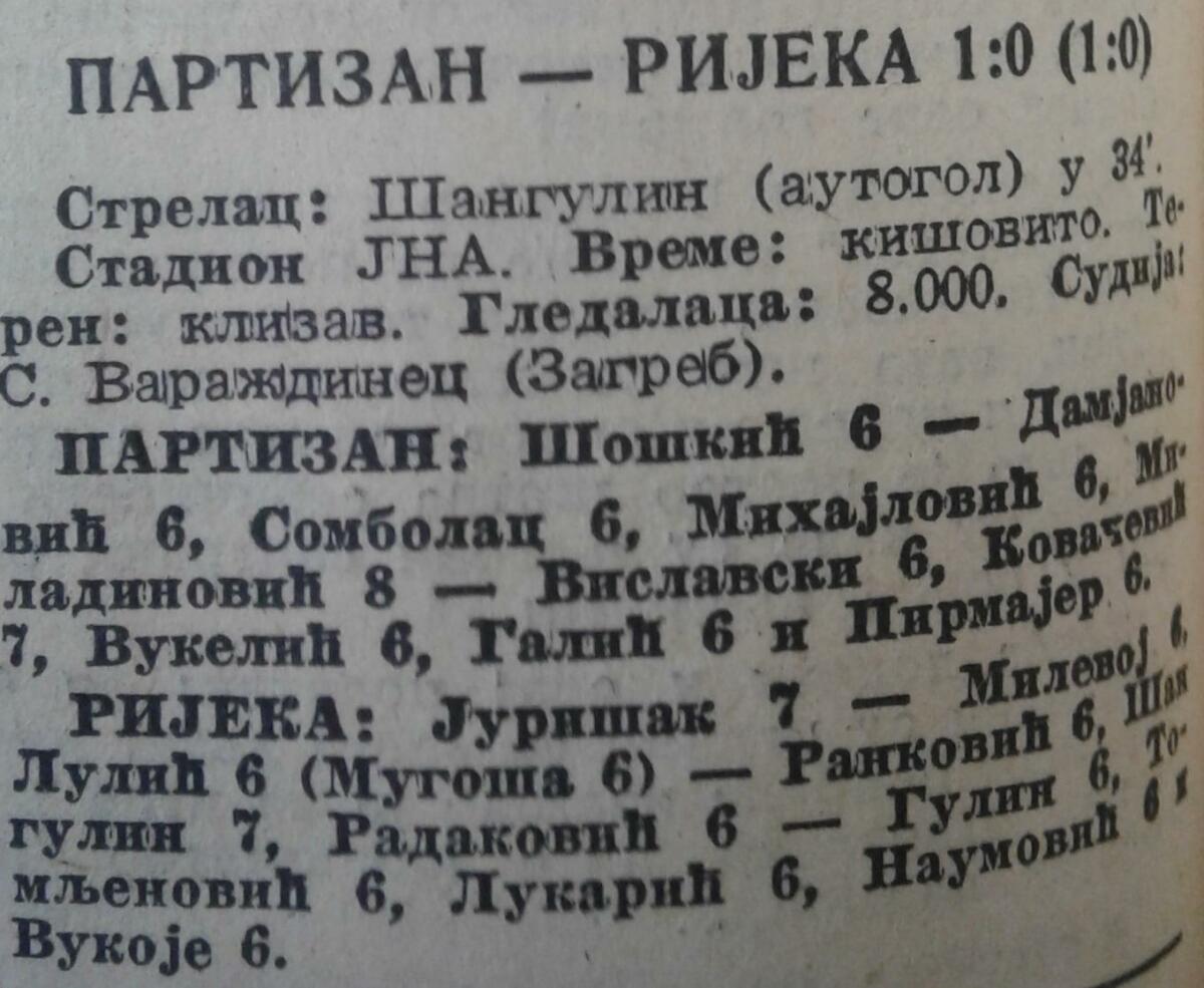 «Партизан» Белград - «Риека» Риека - 1:0