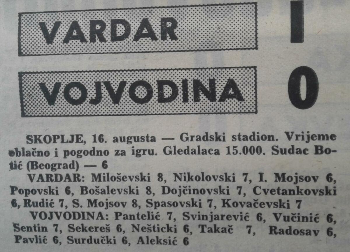 «Вардар» Скопье - «Войводина» Нови-Сад - 1:0