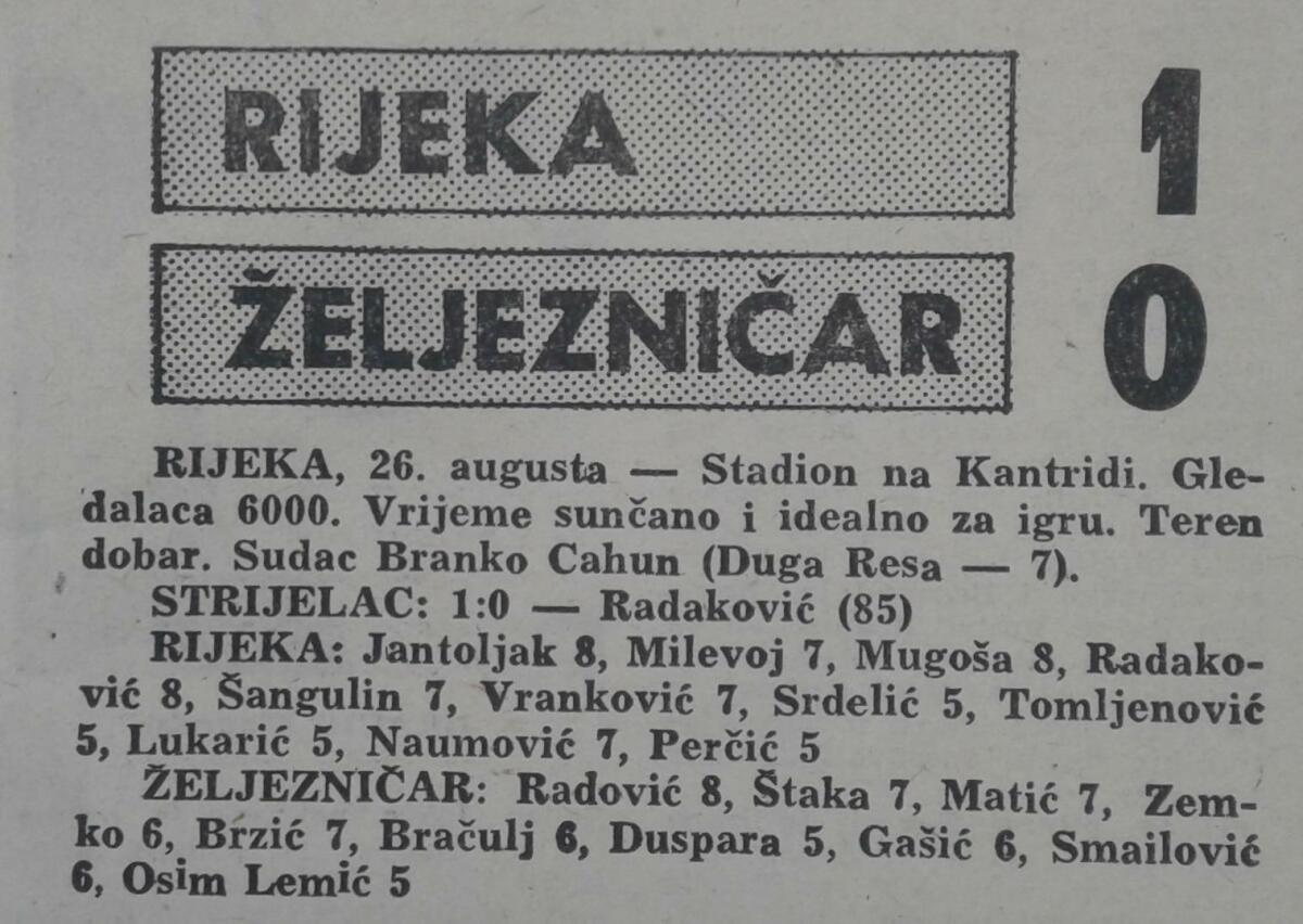 «Риека» Риека - «Железничар» Сараево - 1:0