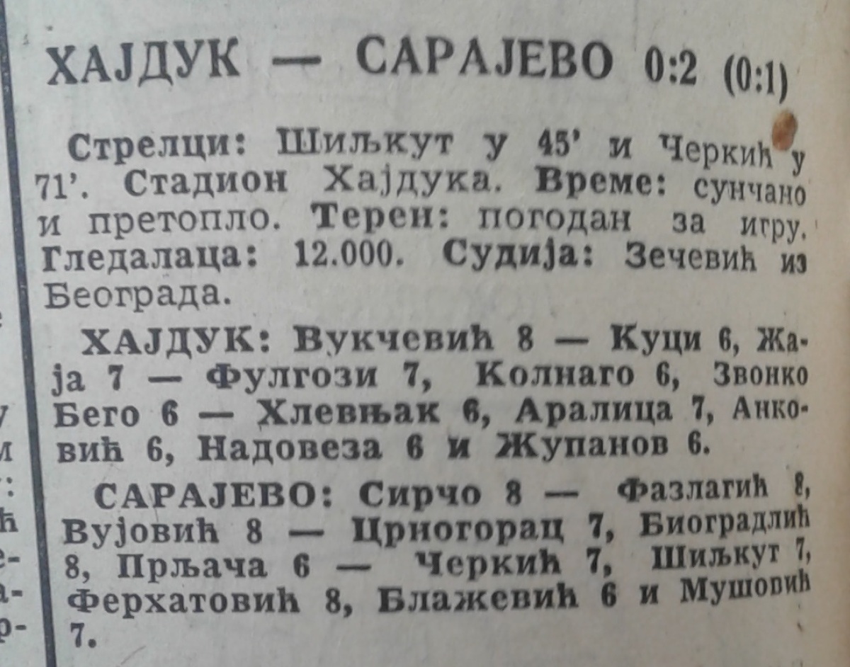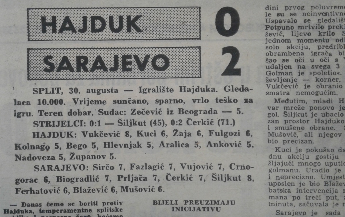 «Хайдук» Сплит - «Сараево» Сараево - 0:2