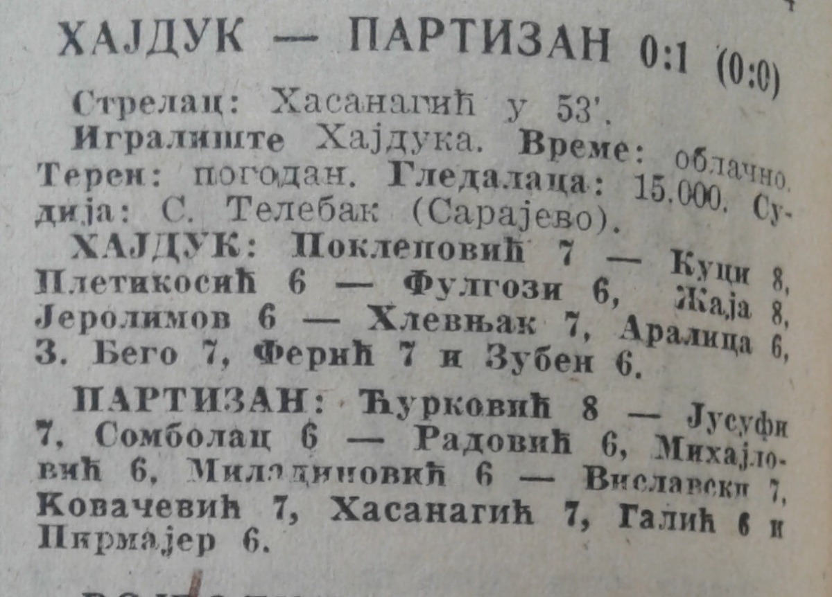 «Хайдук» Сплит - «Партизан» Белград - 0:1