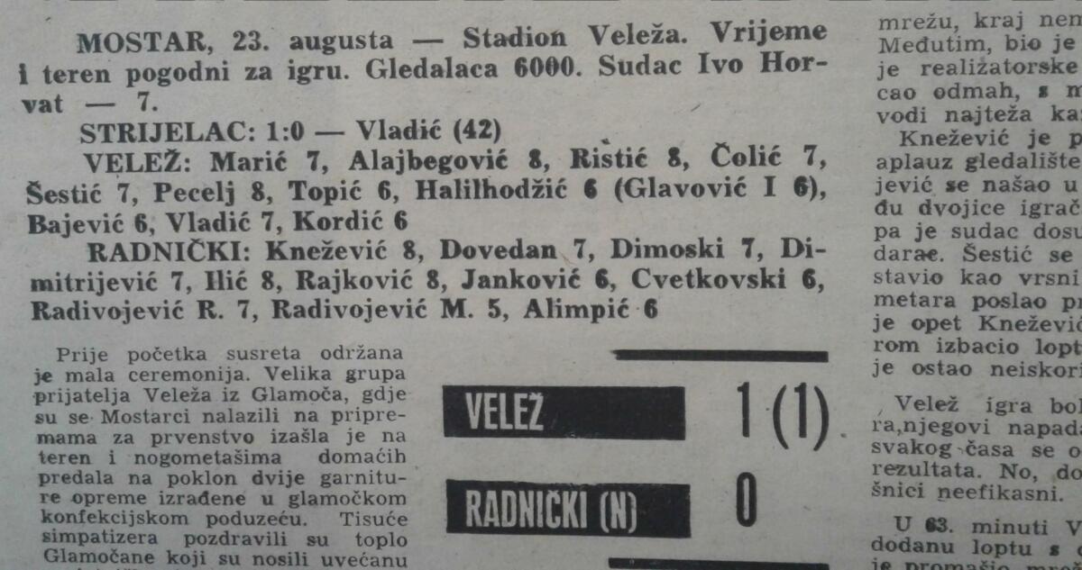«Вележ» Мостар - «Раднички» Ниш - 1:0