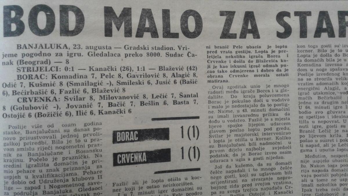 «Борац» Баня-Лука - «Црвенка» Црвенка - 1:1