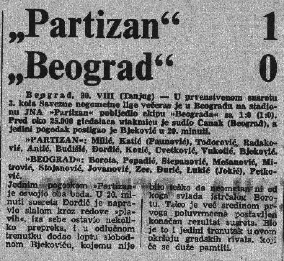 «Партизан» Белград - ОФК Белград - 1:0