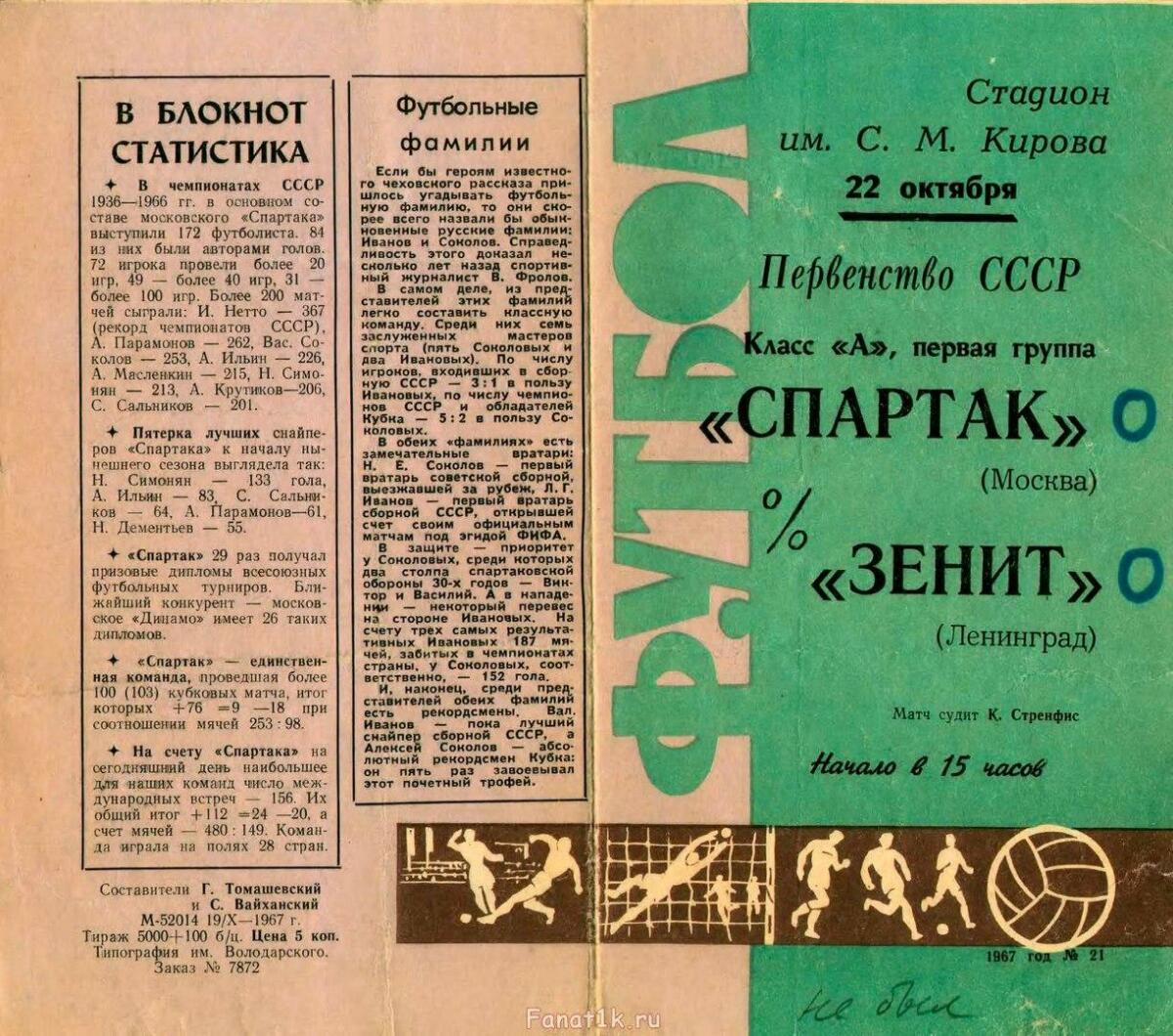 «Зенит» Ленинград - «Спартак» Москва - 0:0