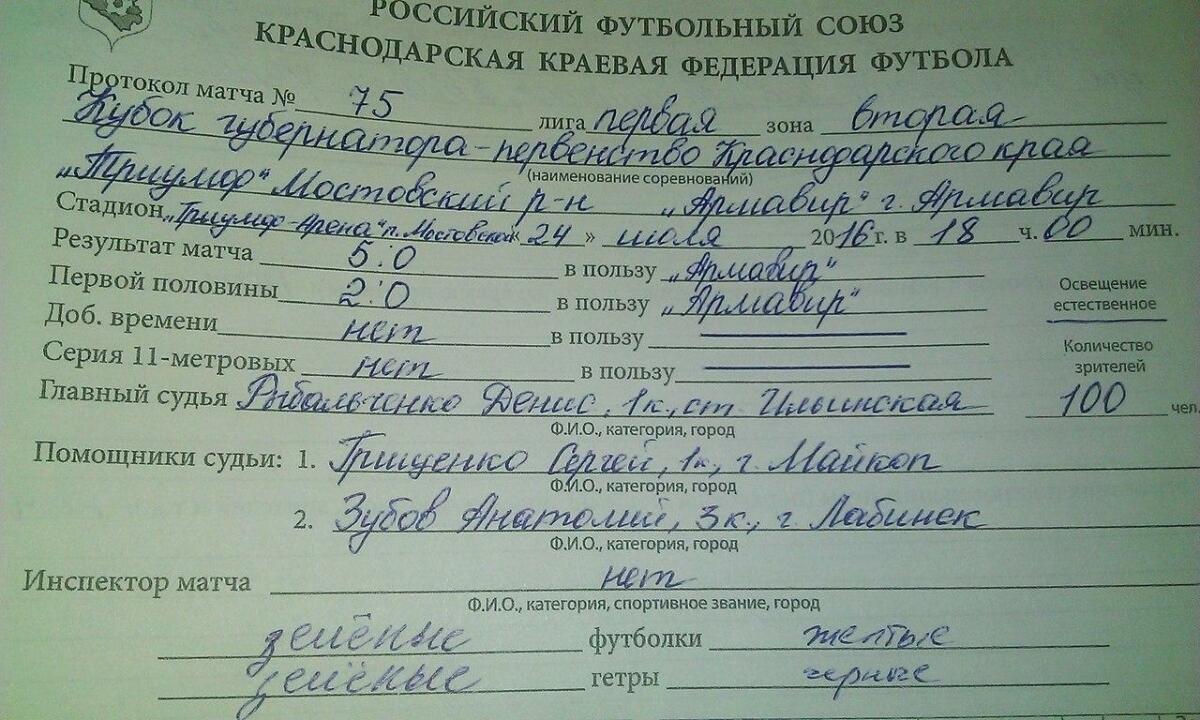 «Триумф» Мостовской - «Армавир-Д» Армавир - 0:5
