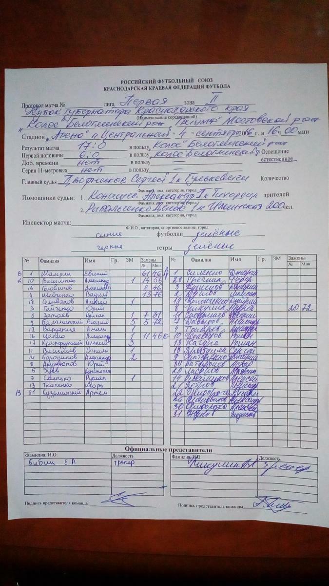 «Колос» Центральный - «Триумф» Мостовской - 17:0