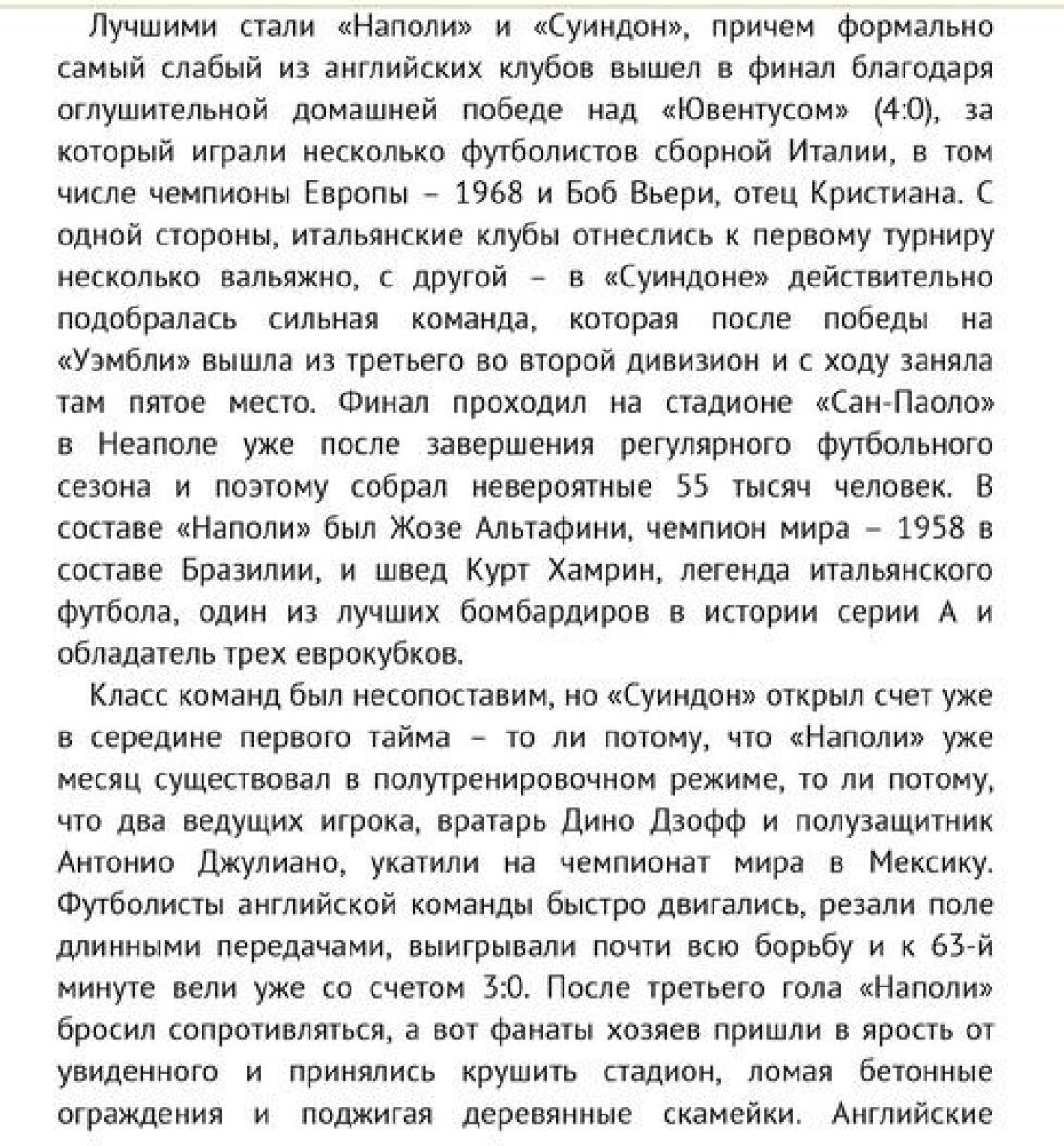 Остановлен на 79-й минуте из-за беспорядков, устроенных болельщиками «Наполи». Результат оставлен в силе.