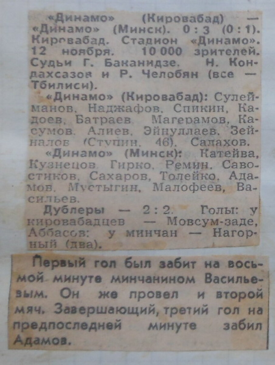 «Динамо» Кировабад - «Динамо» Минск - 0:3