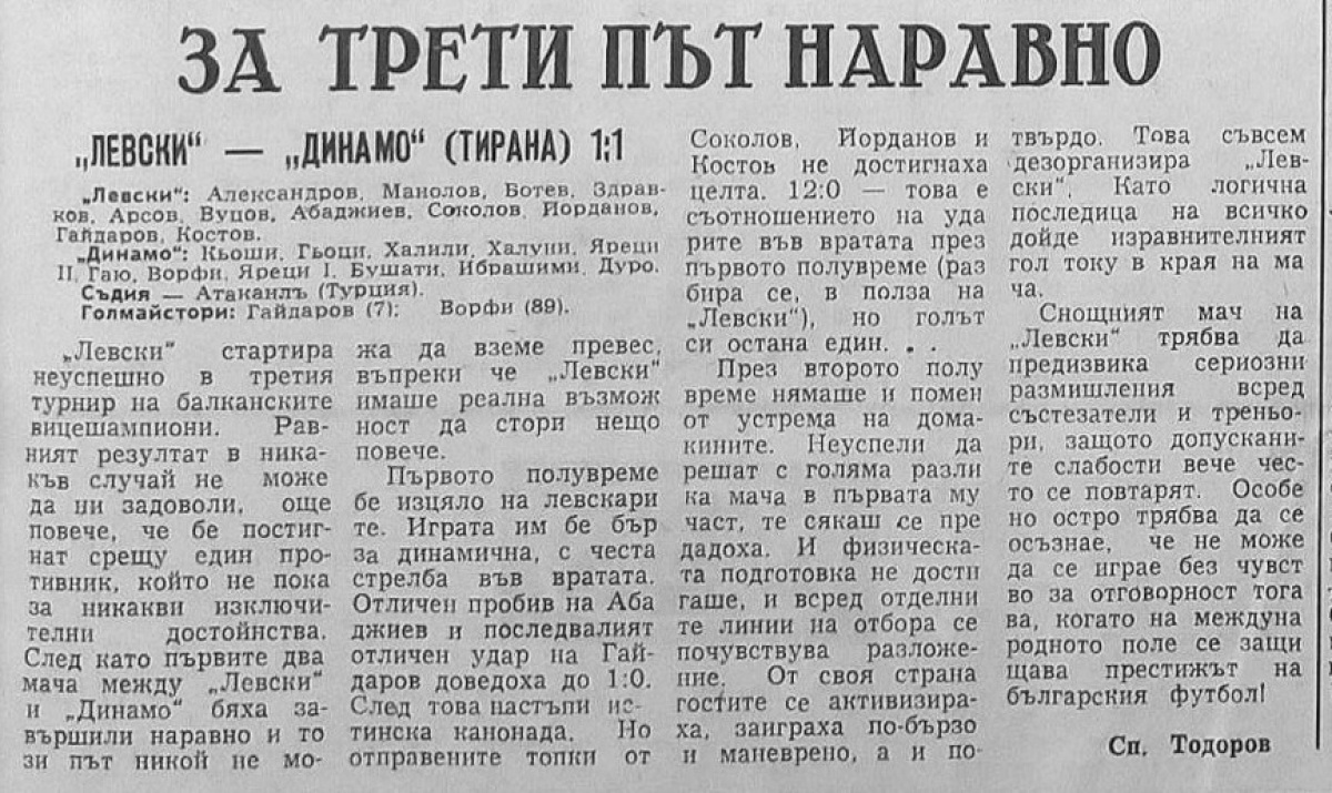 «Левски» София - «Динамо» Тирана - 1:1