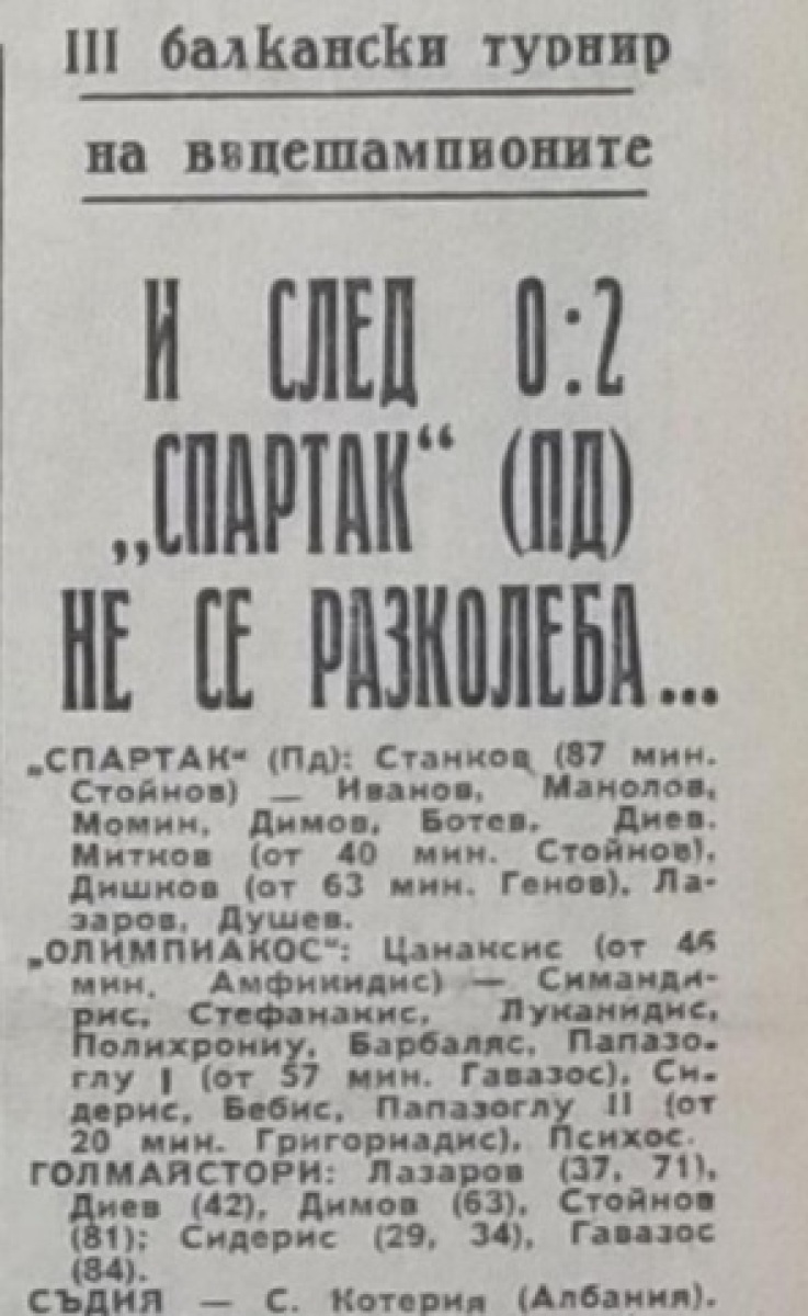 «Спартак» Пловдив - «Олимпиакос» Пирей - 5:3