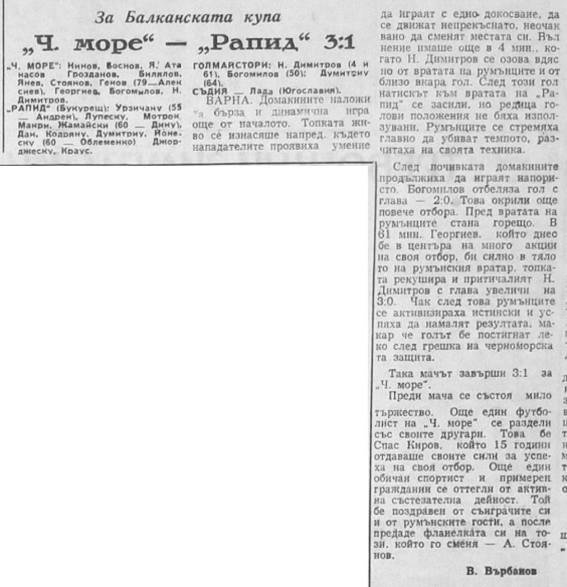 «Черно море» Варна - «Рапид» Бухарест - 3:1