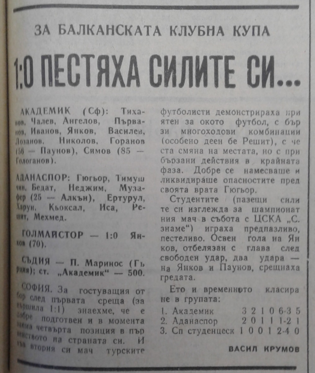 «Академик» София - «Аданаспор» Адана - 1:0