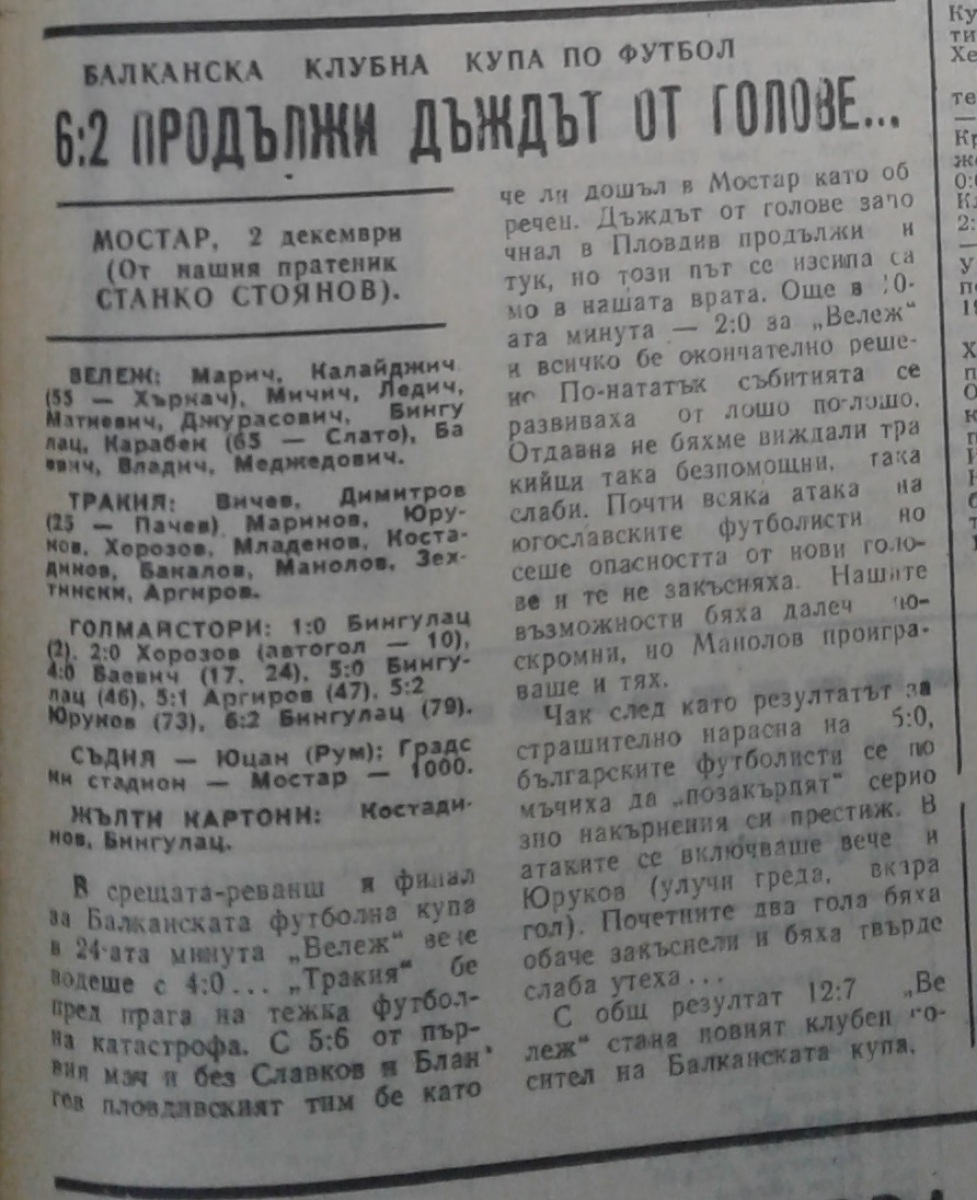 «Вележ» Мостар - «Тракия» Пловдив - 6:2