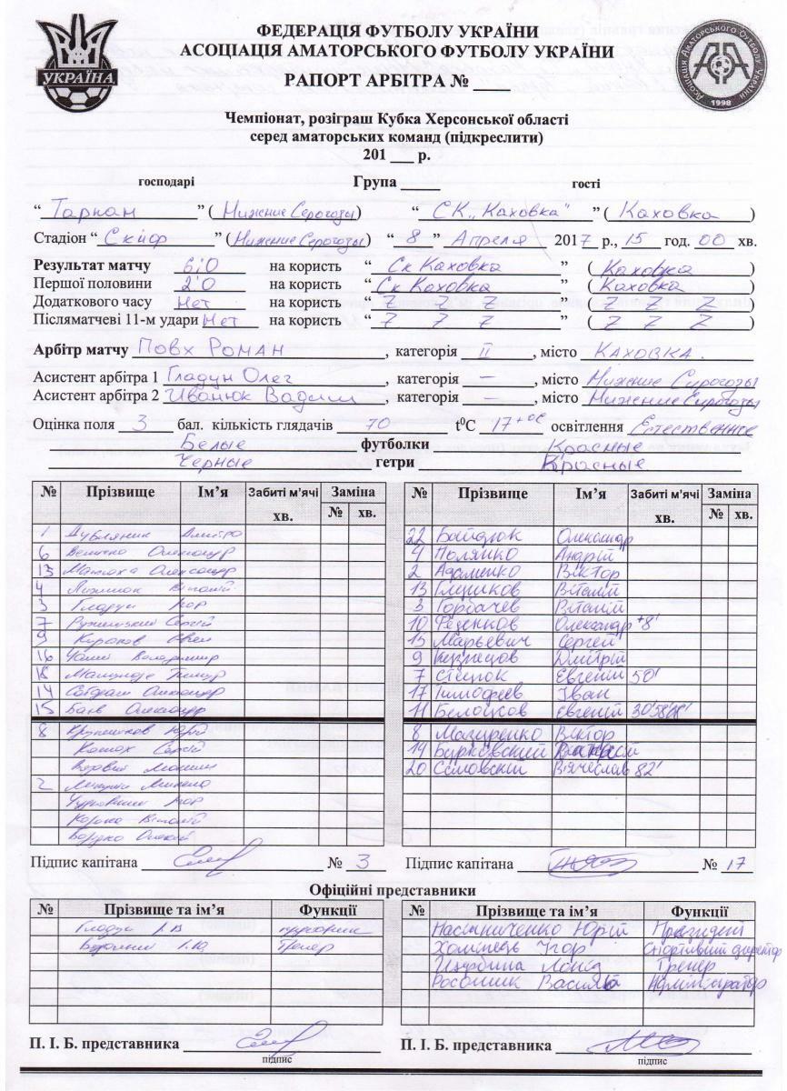 «Тарпан» Нижние Серогозы - «Каховка» Каховка - 0:6