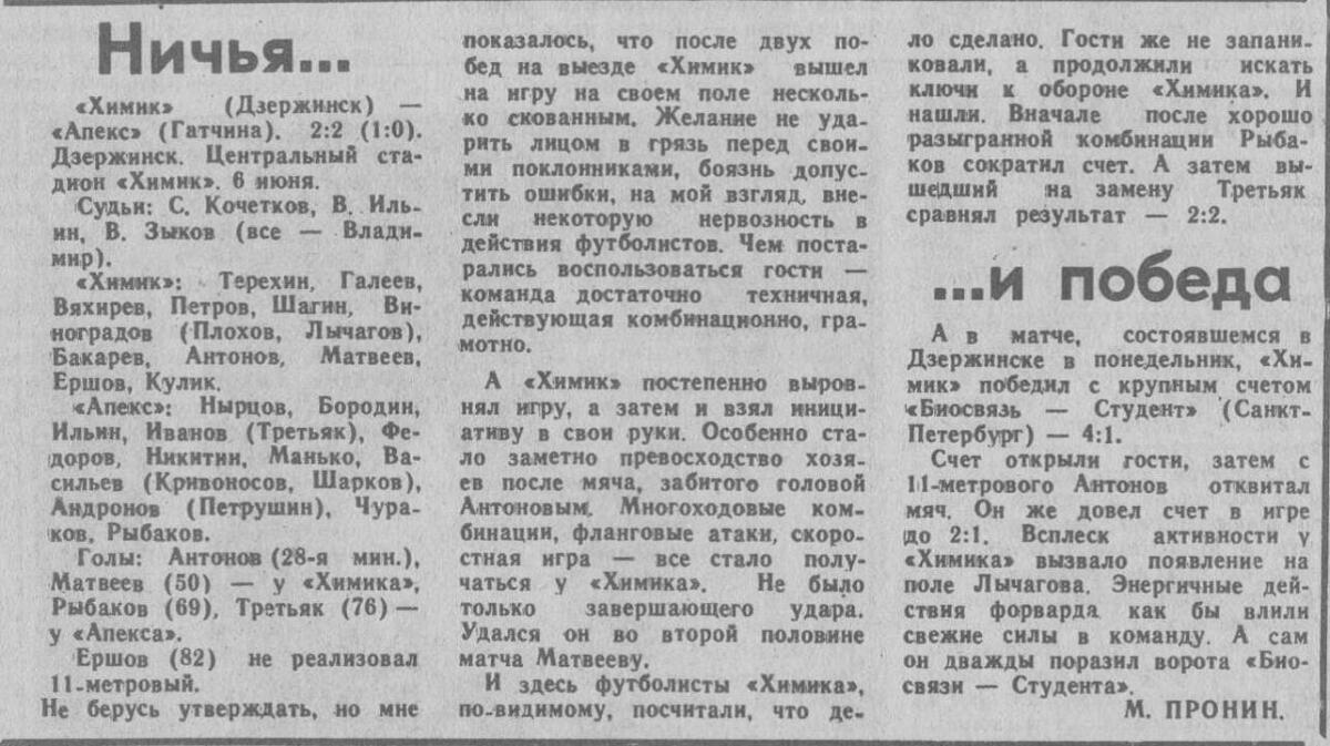 «Химик» Дзержинск - «Апекс» Гатчина - 2:2
