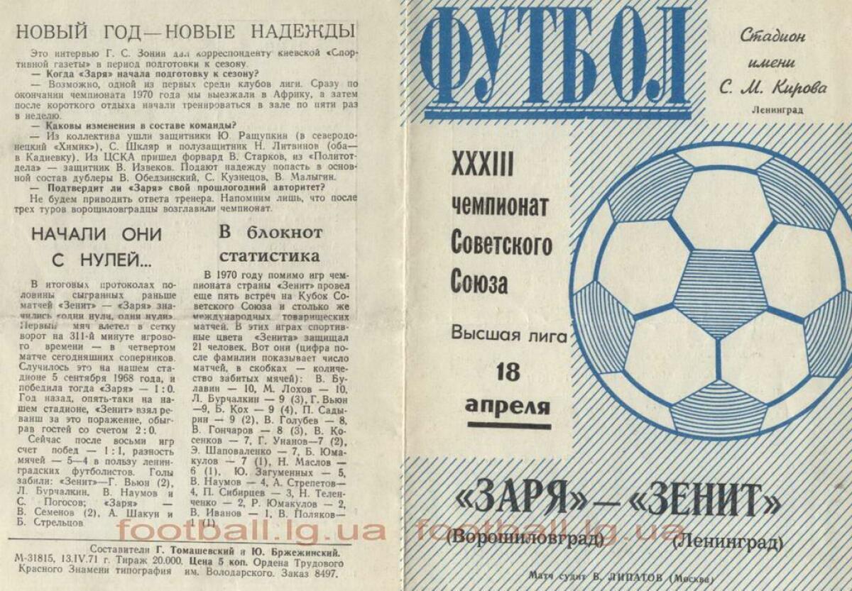 «Зенит» Ленинград - «Заря» Ворошиловград - 0:0