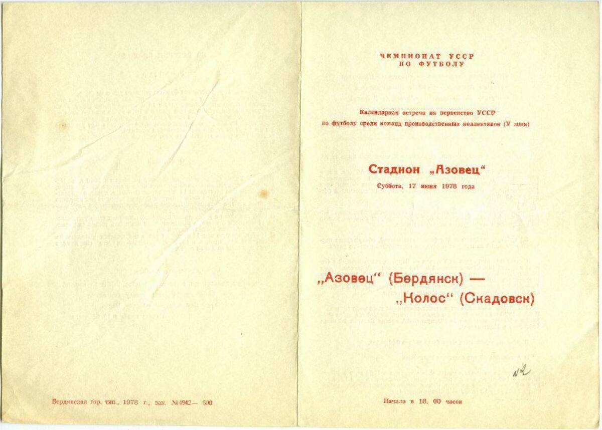 «Азовец» Бердянск - «Колос» Скадовск - 1:0
