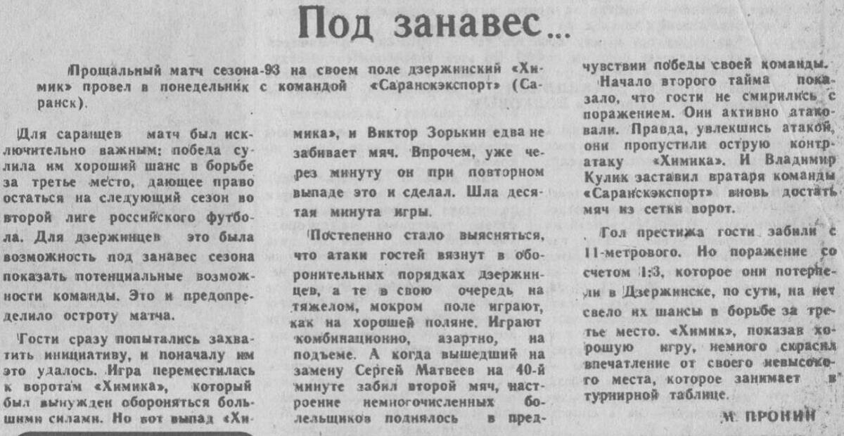 «Химик» Дзержинск - «Саранск-экспорт» Саранск - 3:1
