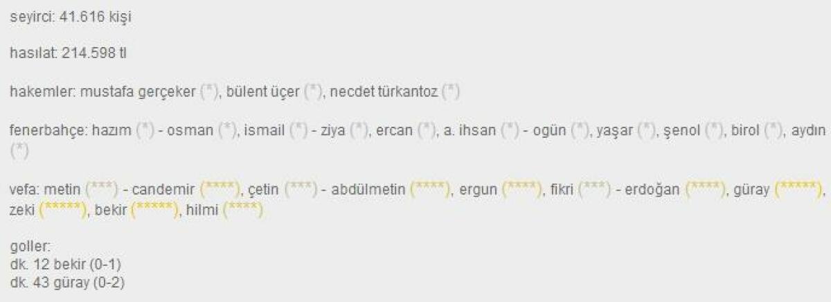 «Фенербахче» Стамбул - «Вефа» Стамбул - 0:2
