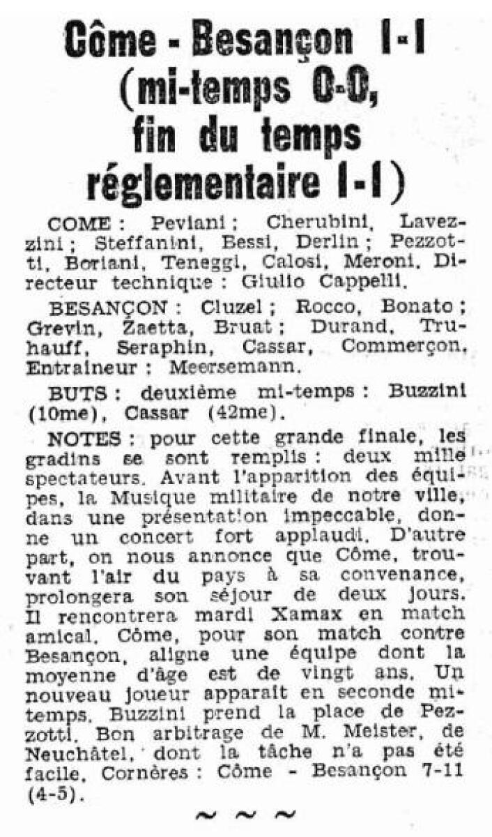 «Комо Кальчо» Комо - «Расинг Клуб Френч-Комту» Безансон - 1:1