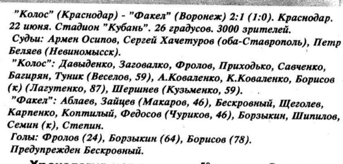«Колос» Краснодар - «Факел» Воронеж - 2:1