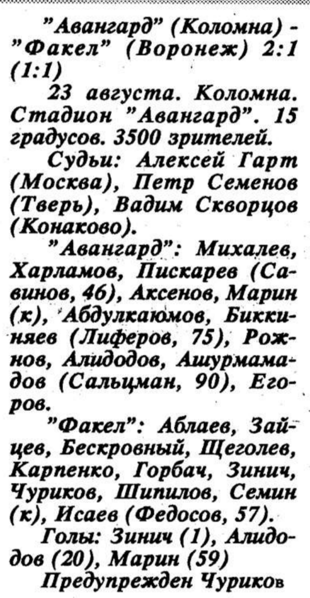 «Авангард-Кортэк» Коломна - «Факел» Воронеж - 2:1