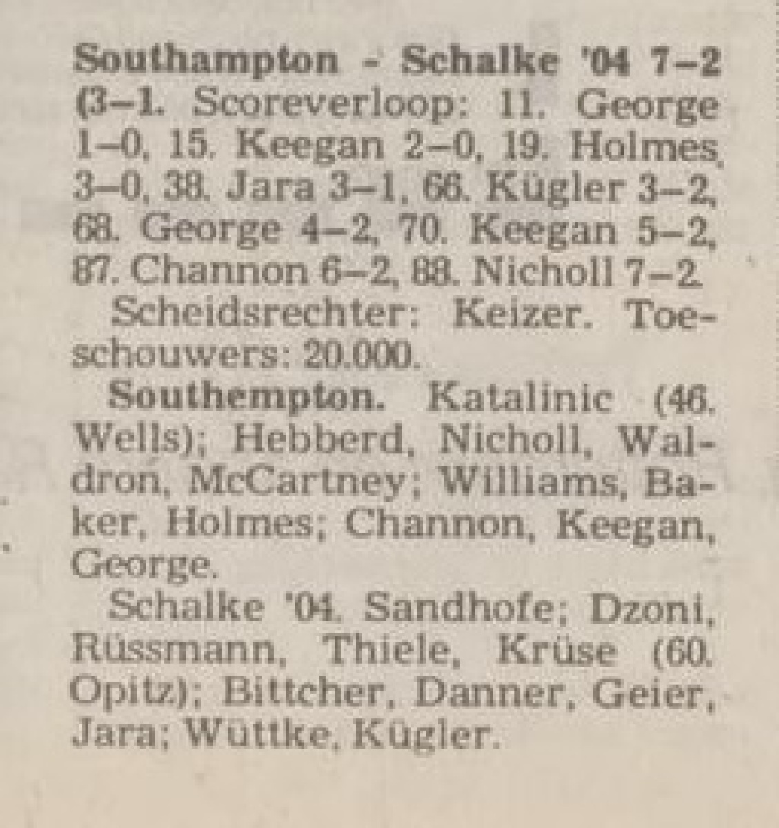 «Саутгемптон» Саутгемптон - «Шальке-04» Гельзенкирхен - 7:2