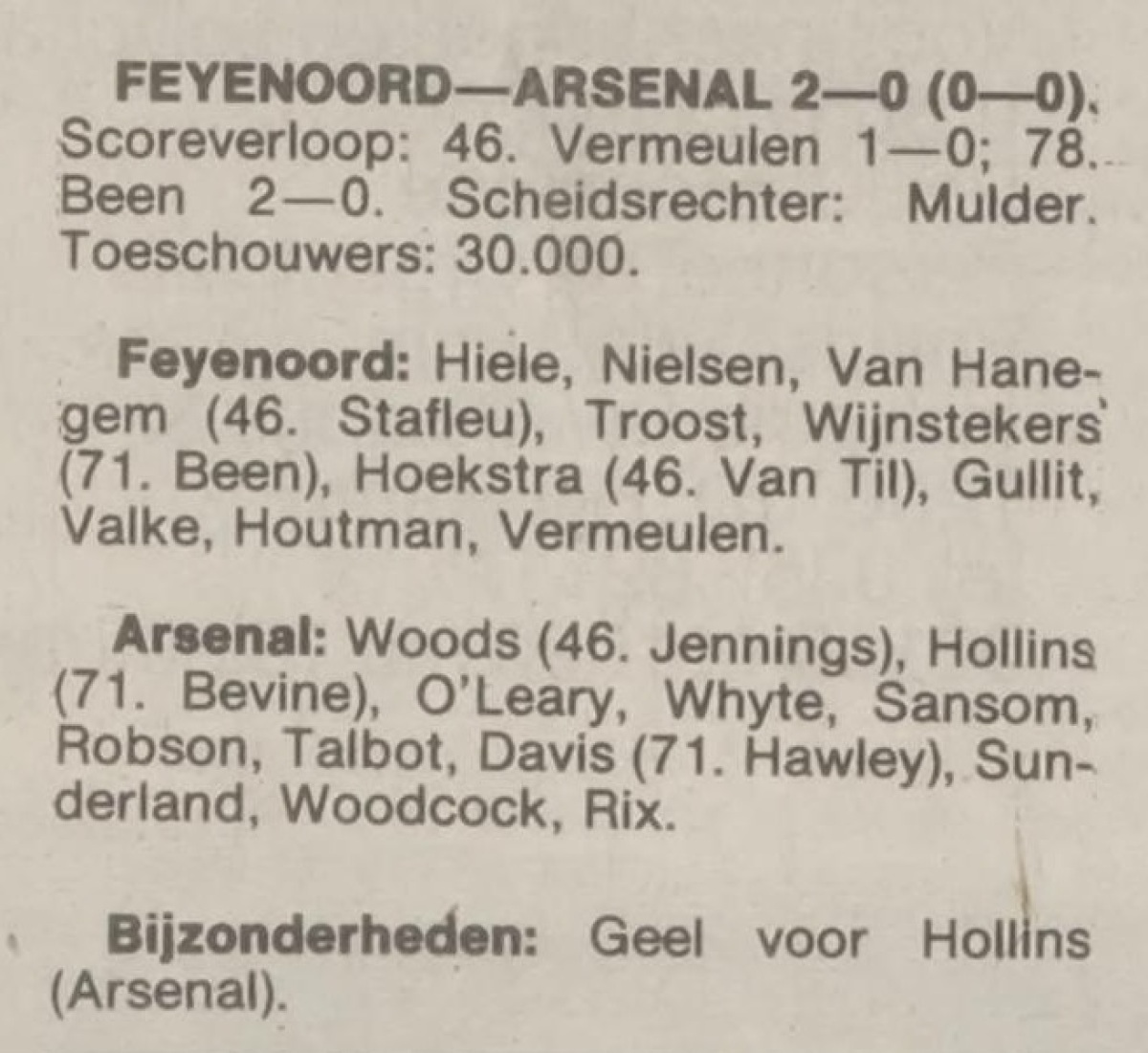«Фейеноорд» Роттердам - «Арсенал» Лондон - 2:0