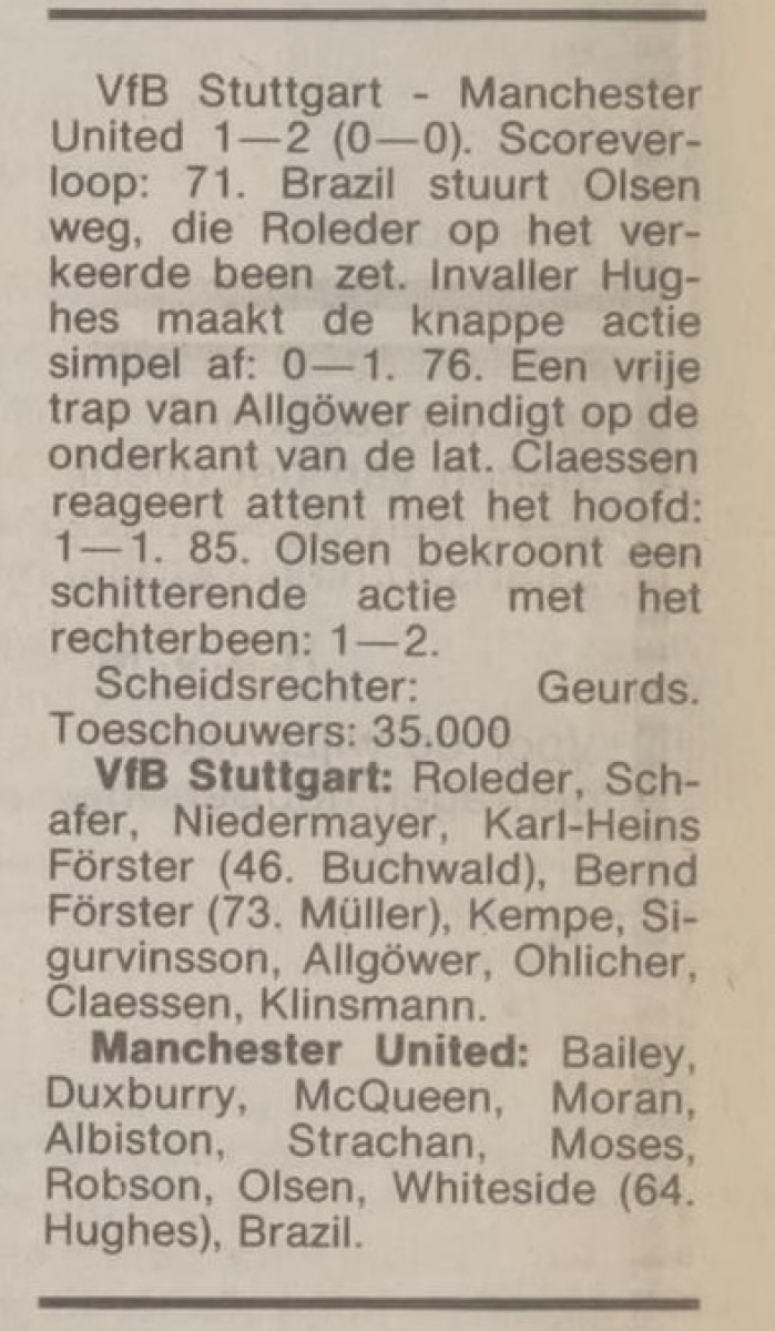 «Манчестер Юнайтед» Манчестер - «Штутгарт-1893» Штутгарт - 2:1