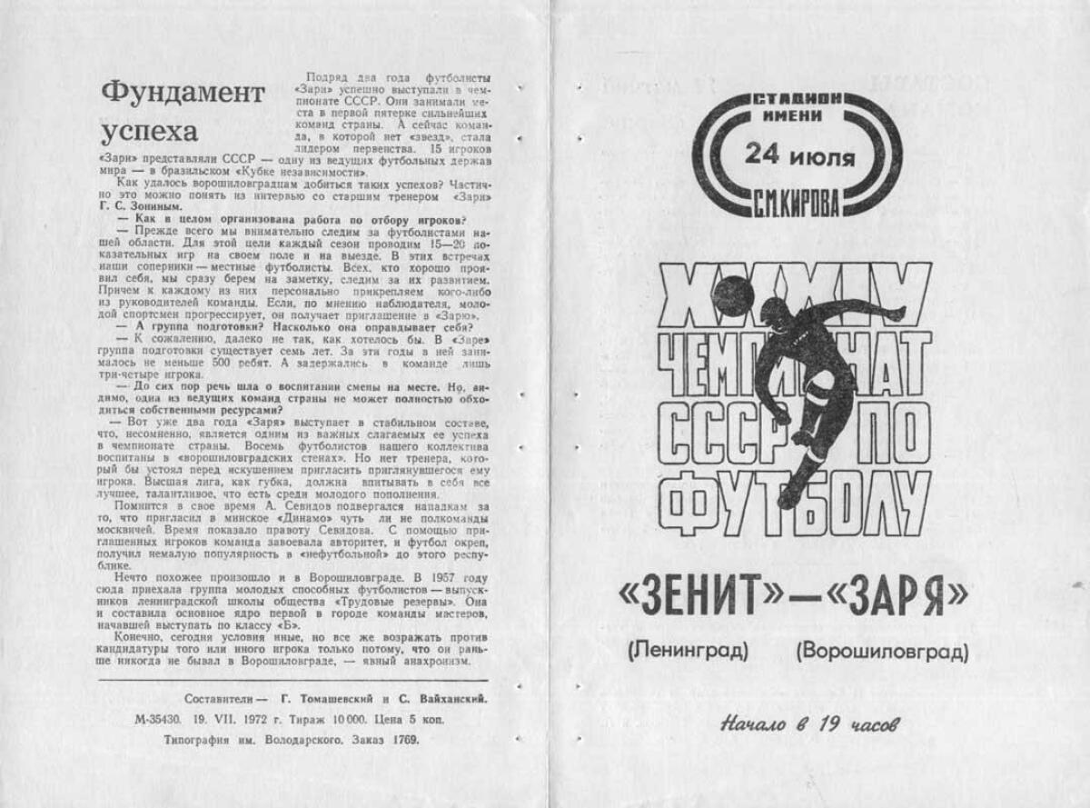 «Зенит» Ленинград - «Заря» Ворошиловград - 0:0
