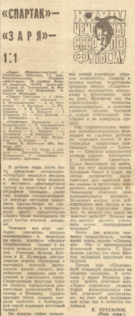 «Спартак» Москва - «Заря» Ворошиловград - 1:1