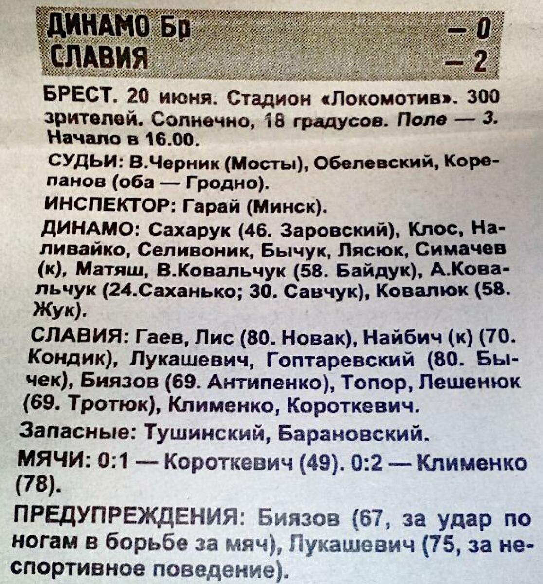 «Динамо» Брест - «Славия» Мозырь - 0:2