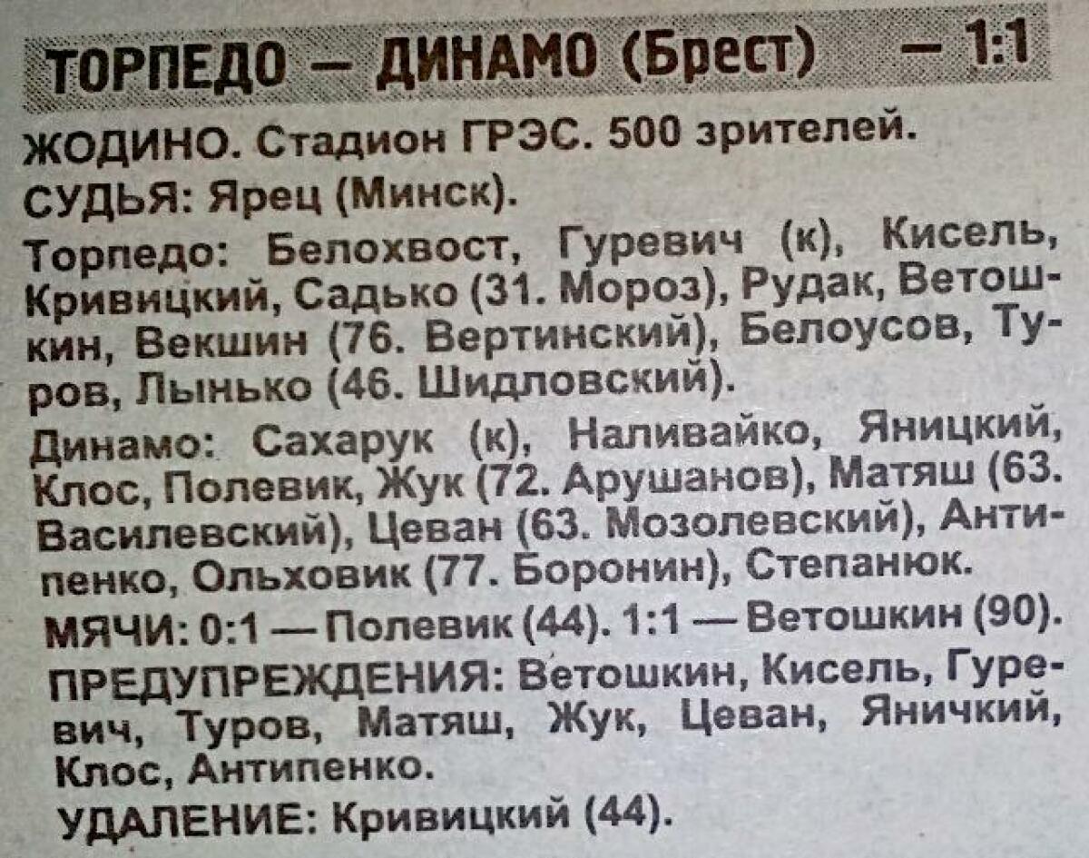«Торпедо» Жодино - «Динамо» Брест - 1:1
