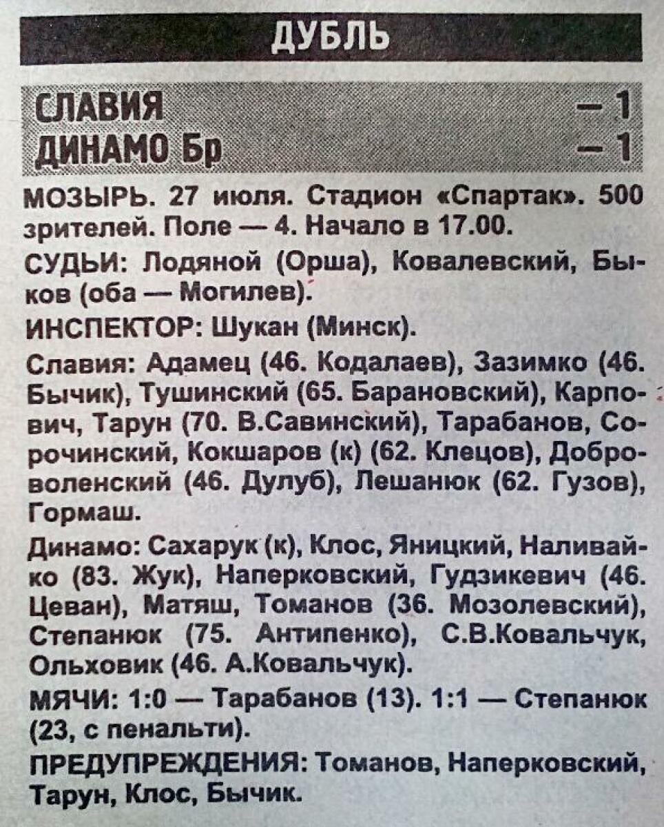 «Славия» Мозырь - «Динамо» Брест - 1:1