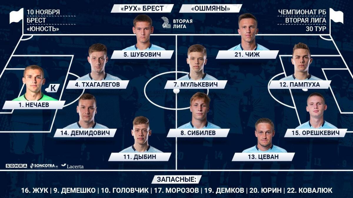 «Рух» Брест - «Ошмяны-БГУФК» - 1:0