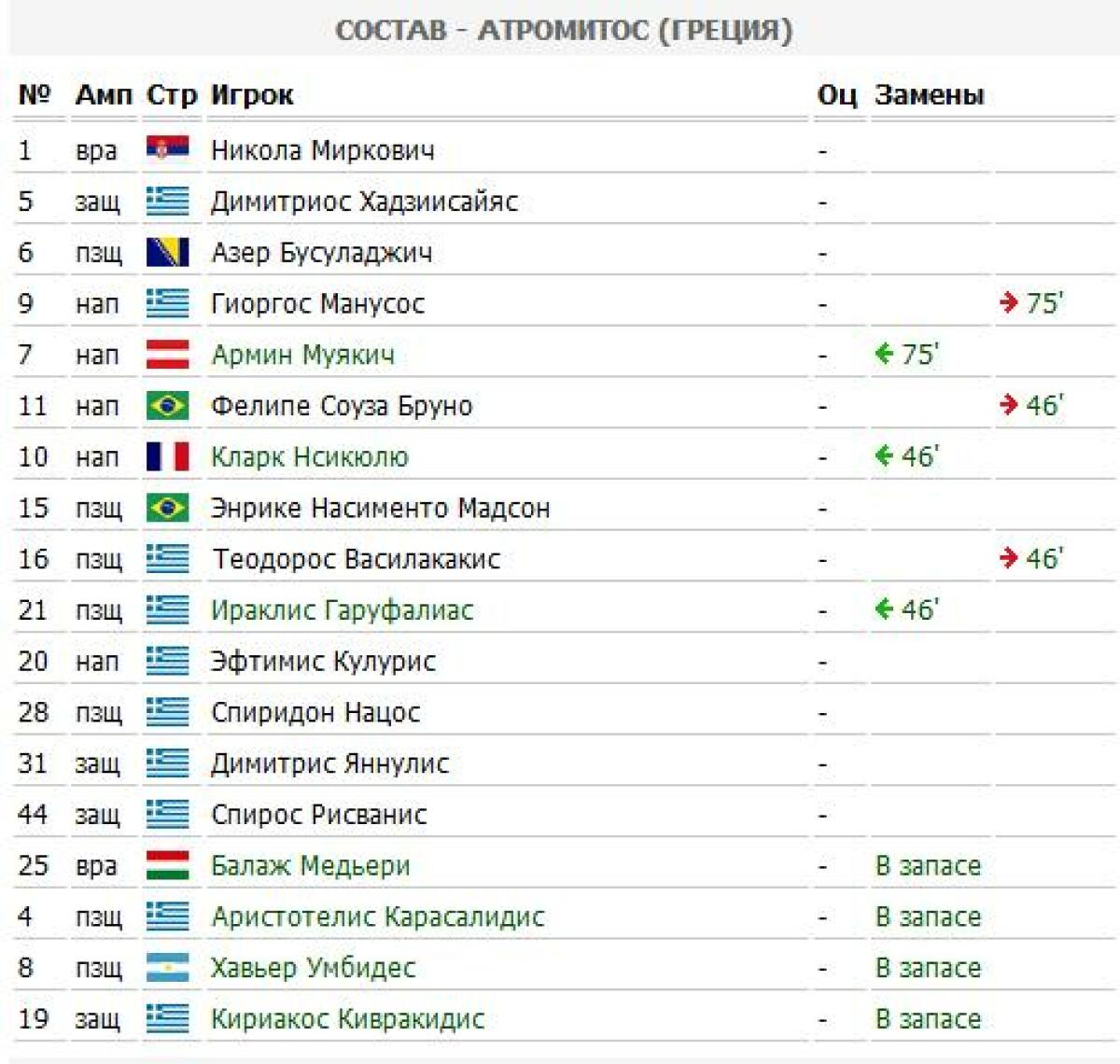 Эфтимис Кулурис - 88 минута - гол Эфтимис Кулурис - 26 минута - предупреждение