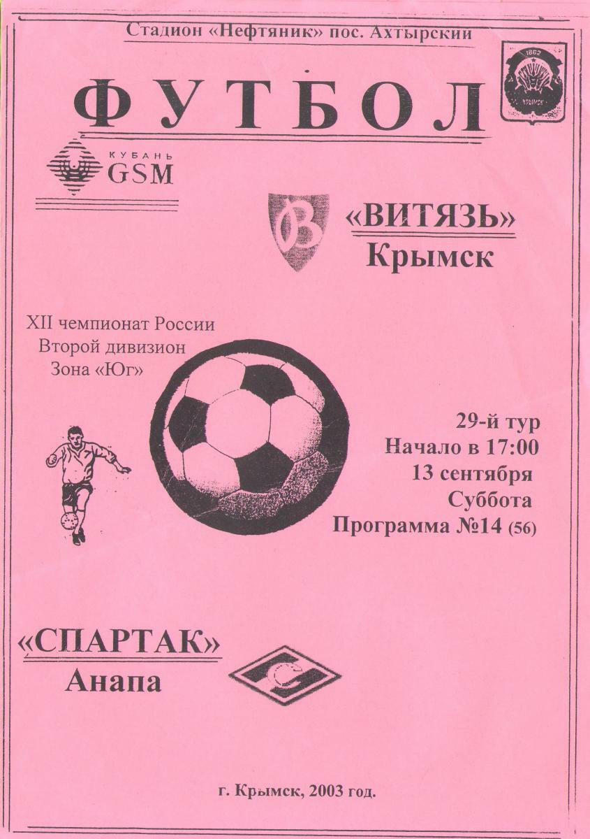 «Витязь» Крымск - «Спартак» Анапа - 1:0