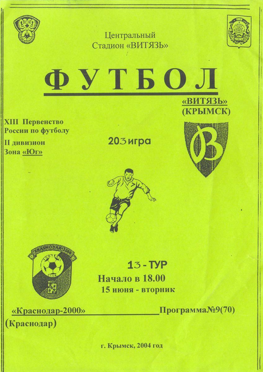 «Витязь» Крымск - «Краснодар-2000» Краснодар - 0:0