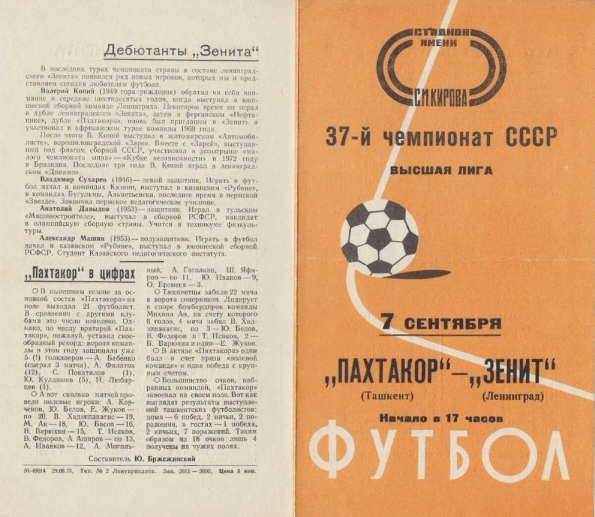 «Зенит» Ленинград - «Пахтакор» Ташкент - 1:0