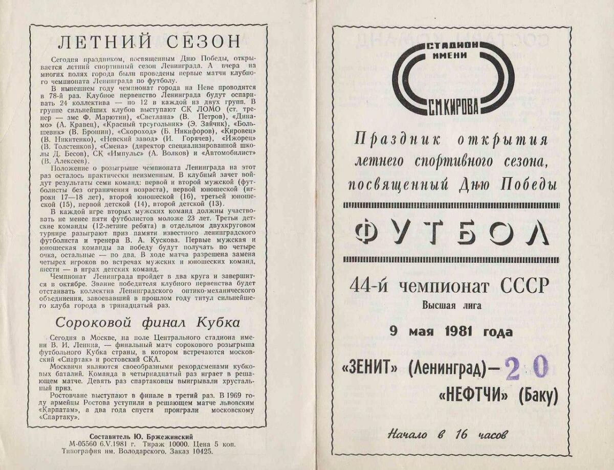 «Зенит» Ленинград - «Нефтчи» Баку - 2:0
