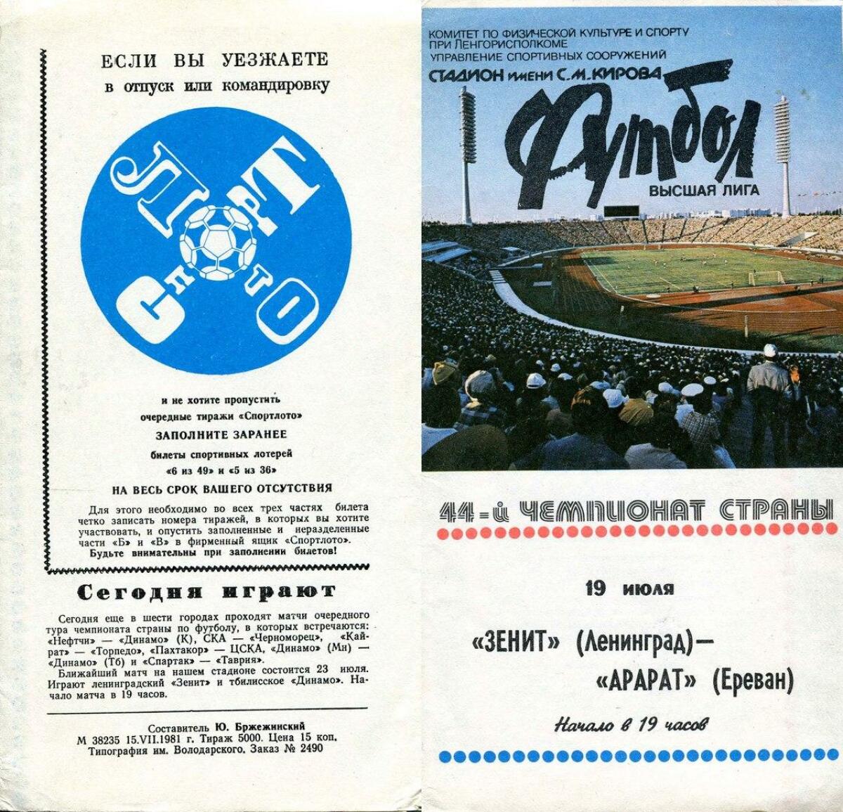 «Зенит» Ленинград - «Арарат» Ереван - 1:1
