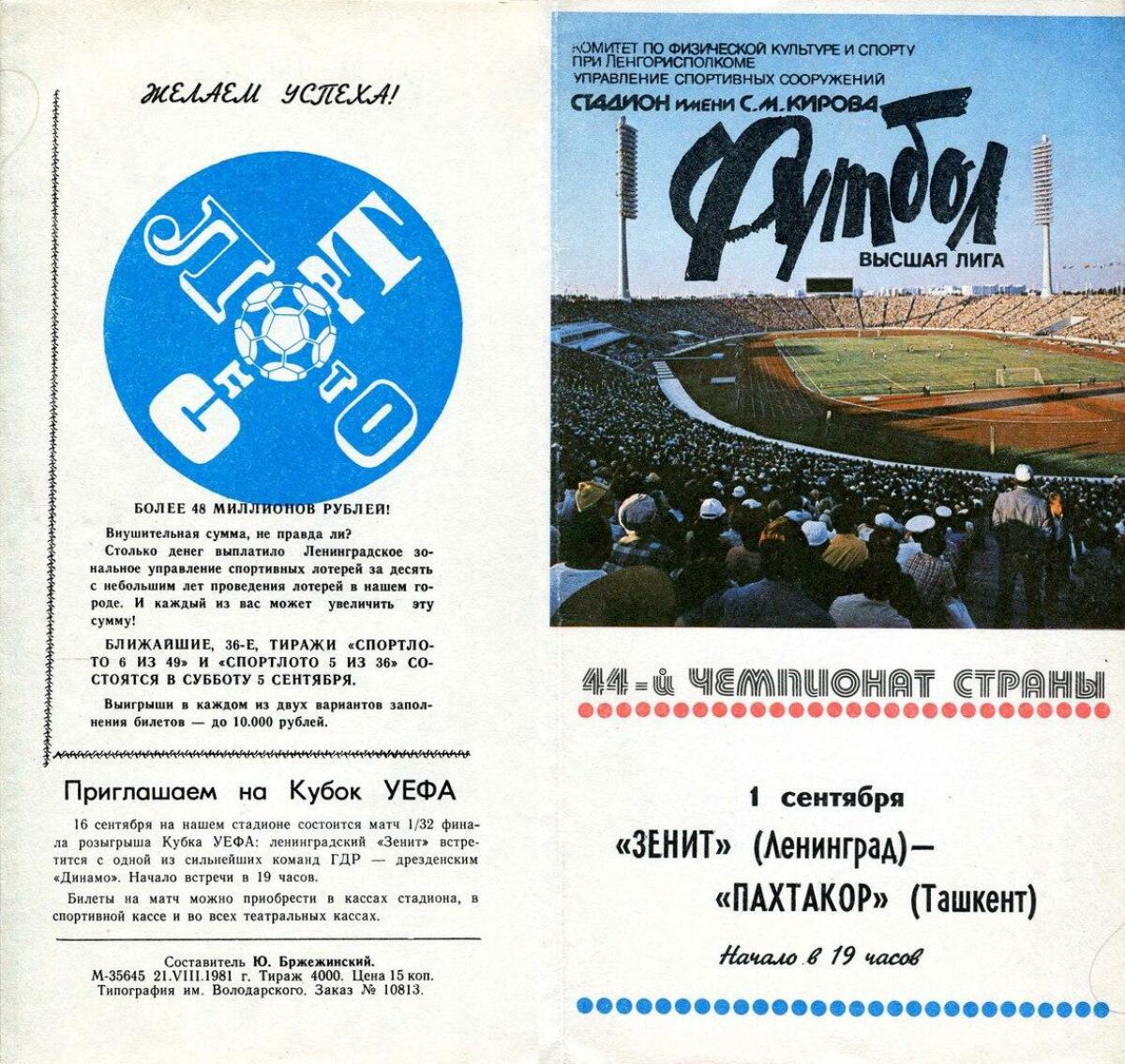 «Зенит» Ленинград - «Пахтакор» Ташкент - 1:2
