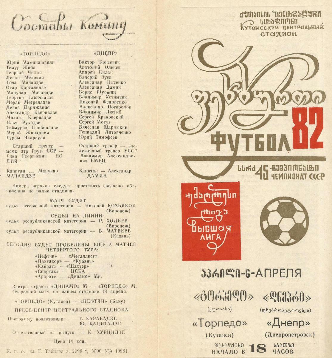 «Торпедо» Кутаиси - «Днепр» Днепропетровск - 2:3