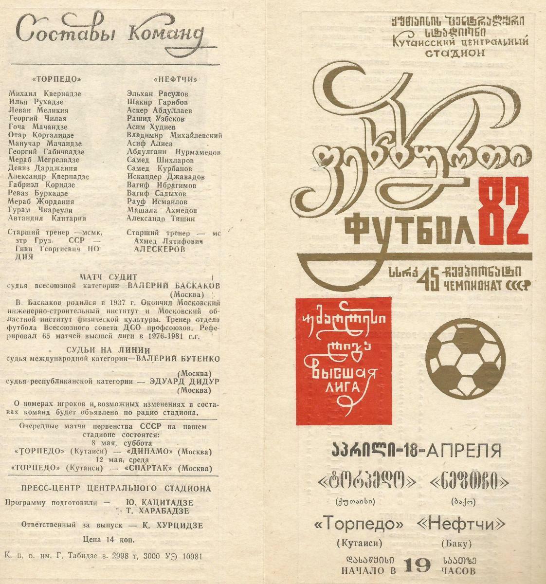 Чемпионат СССР 1982. Высшая лига