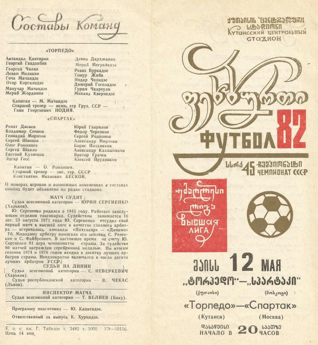 «Торпедо» Кутаиси - «Спартак» Москва - 2:4