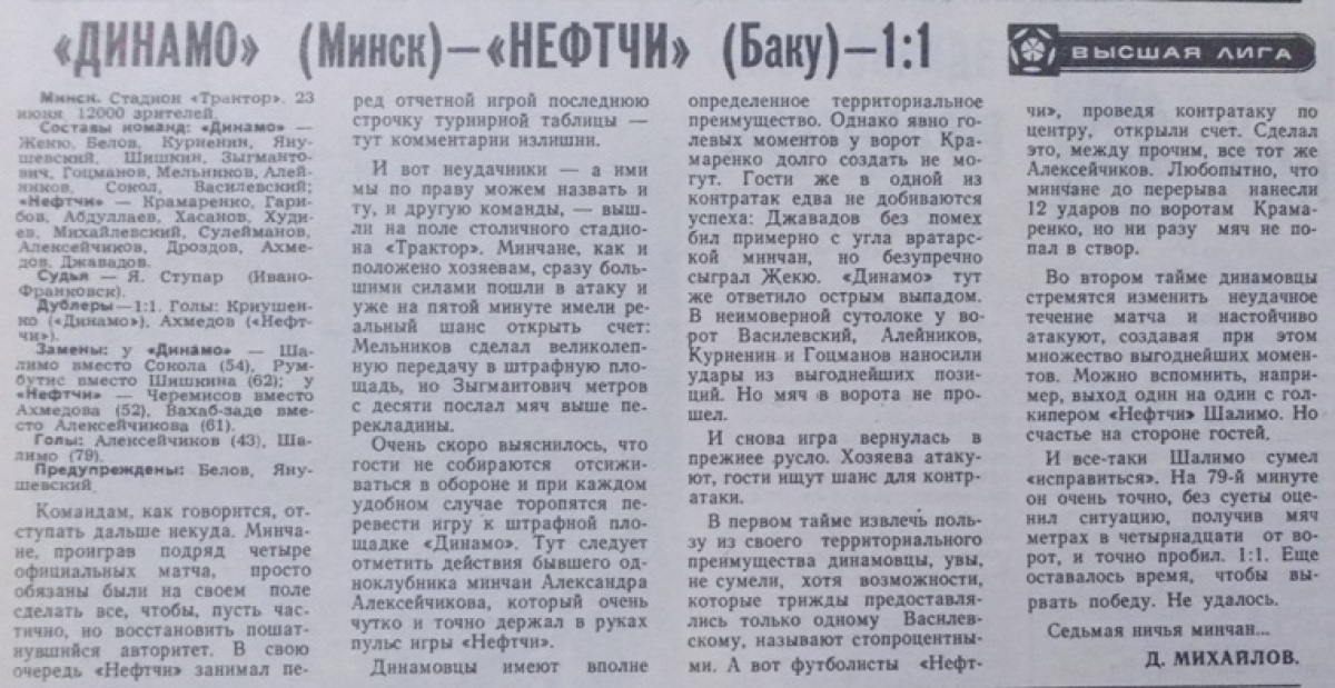 «Динамо» Минск - «Нефтчи» Баку - 1:1
