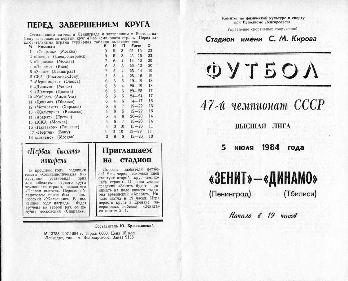 «Зенит» Ленинград - «Динамо» Тбилиси - 1:0
