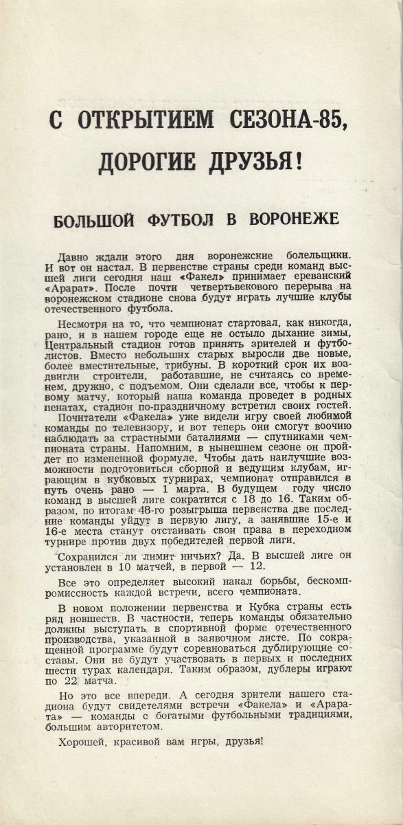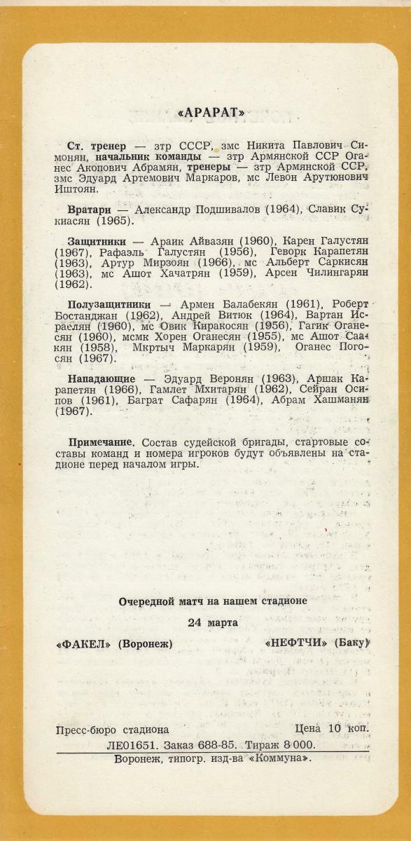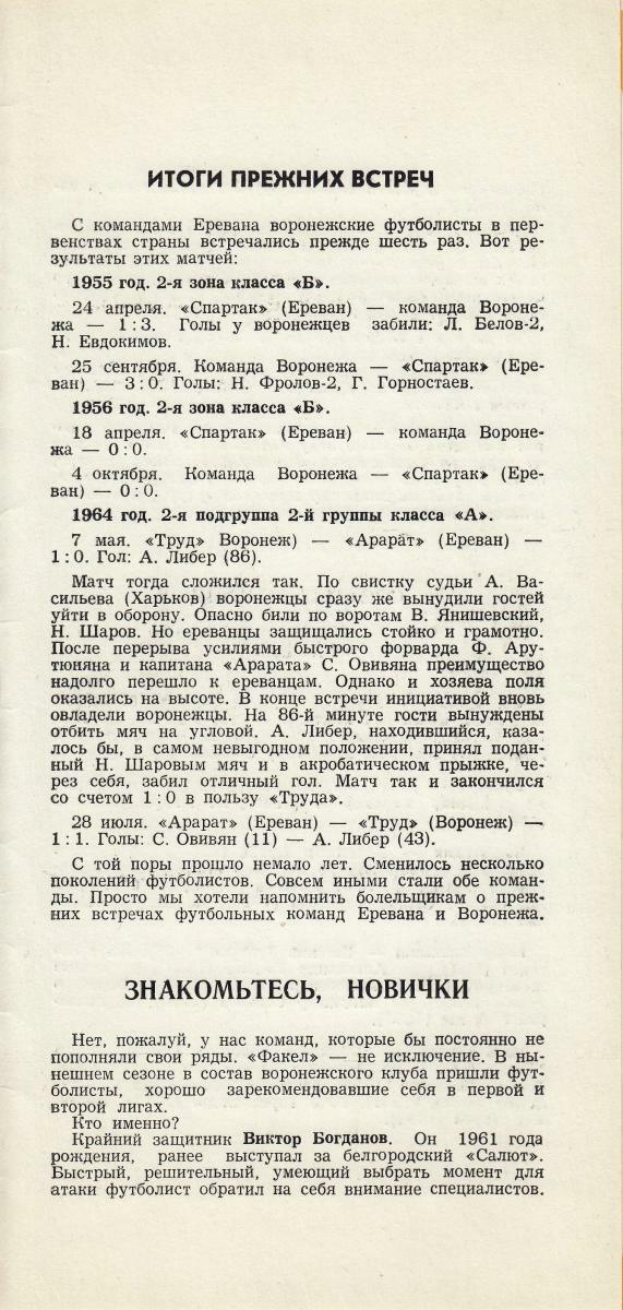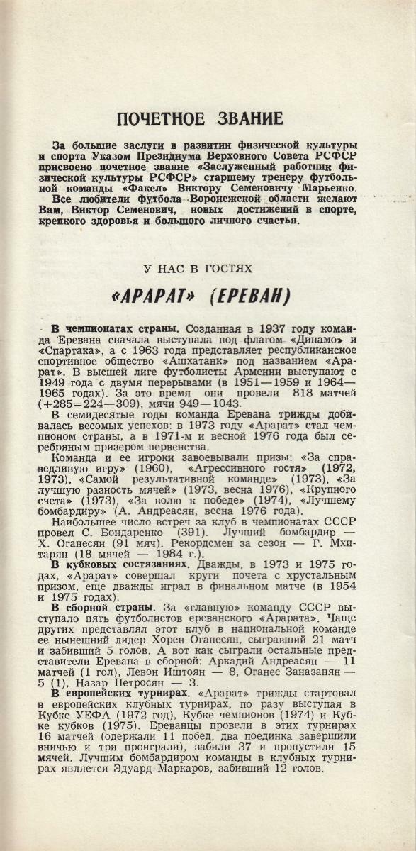 «Факел» Воронеж - «Арарат» Ереван - 1:0
