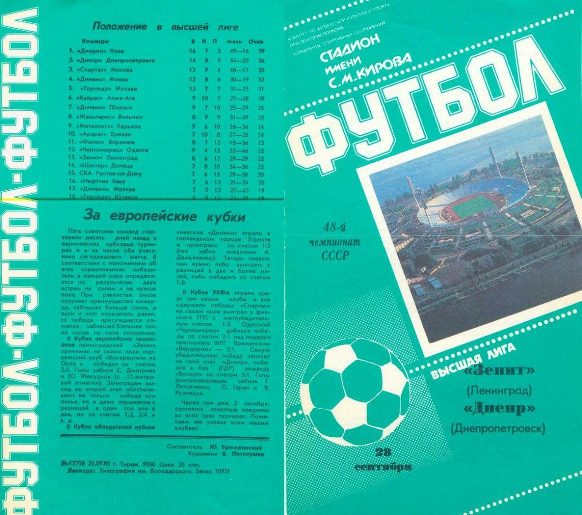 «Зенит» Ленинград - «Днепр» Днепропетровск - 2:1